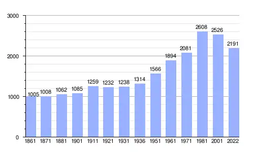| Gráfica de evolución demográfica de Ottana entre 1861 y 2022 |