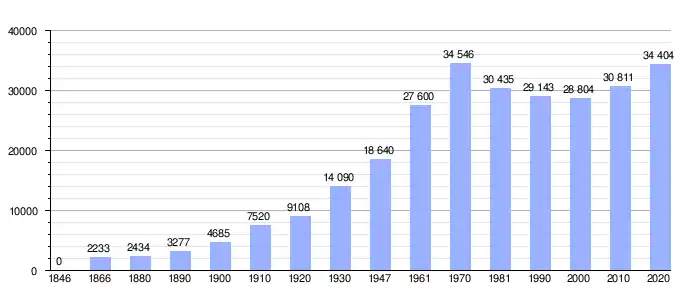 | Gráfica de evolución demográfica de Auderghem entre 1846 y 2020 |