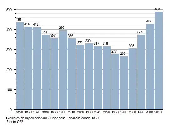 Le siguiente gráfica resume la evolución de la población de Oulens-sous-Échallens entre 1850 y 2010:[3]