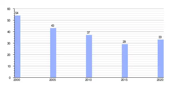 | Gráfica de evolución demográfica de Ouviaño (parroquia) entre 2000 y 2020 |