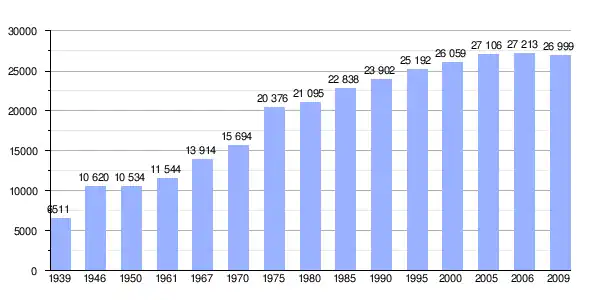 | Gráfica de evolución demográfica de Overath entre 1939 y 2009 |