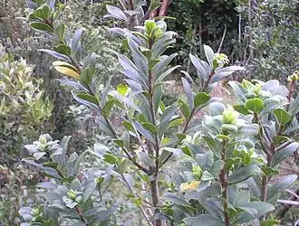 Follaje de pillopillo o pellopello (Ovidia pillopillo), nativa de Chile. | ||