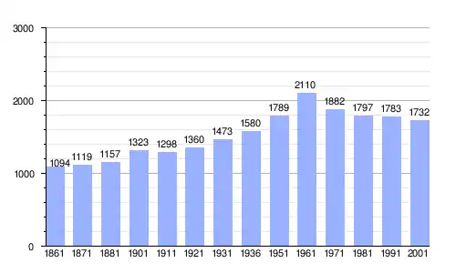 | Gráfica de evolución demográfica de Ovodda entre 1861 y 2001 |