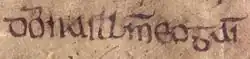 - ↑ Desde la primera década del 2000, los académicos le han dado a Owen varios nombres patronímicos en fuentes secundarias en inglés: Eogan mac Domnaill,[1] y Owain ap Dyfnwal.[2] Asimismo, desde los años 1990 los académicos confontraron a Owen con varios nombres personales en fuentes secundarias en también inglés: Eogan,[3] Eugenius,[2] Owain,[4] Owen,[5] y Ywain[6]