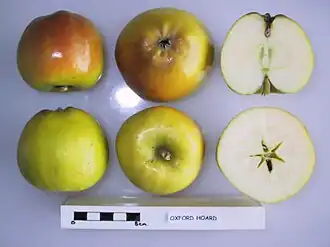 - ↑ a b c d e La manzana 'Oxford Hoard' en el "National fruit collection.org.uk". Consultado el 23 de diciembre de 2021.