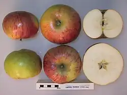 ![]() La variedad de manzana 'Oxford Yeoman' con secciones cruzadas. | ||