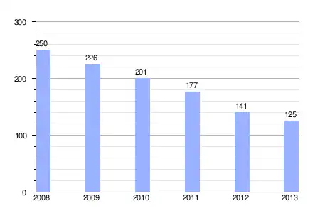 La deuda viva municipal por habitante en 2013 ascendía a 39,01 €.[11]
