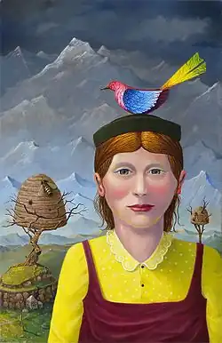 Pájaro presenta sus temas en composiciones de tono un tanto teatral, como indicando que su pintura tiene historias para contar, y con una intensidad en la presentación que les infunde un sentimiento de aún más importancia personal.[4][5][6]