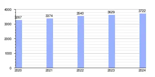 Hasta 2024 la población era de 3722 habitantes,[2] con una densidad de población de 85,95 hab/km².[2]