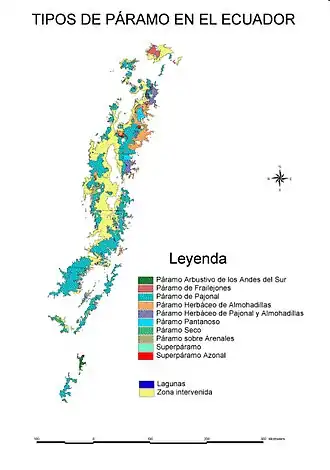 Mapa de los diferentes tipos de páramo en el Ecuador (ver Mena et al. en la bibliografía).