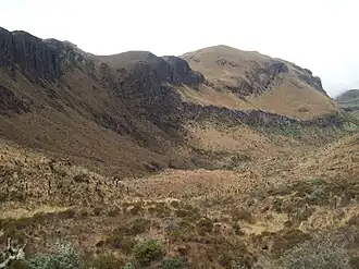 El subpáramo es la transición entre el bosque y las praderas a alrededor de 3,000-3,500 metros (9,800-11,500 pies) de elevación. Contiene árboles pequeños y dispersos, dando paso a matorrales, arbustos enanos y hierbas. El páramo herbáceo crece a altitudes de aproximadamente 3.500-4.100 metros (11.500-13.500 pies) y en su mayoría contiene pasto o hierbas de las especies Calamagrostis o Festuca. También hay áreas rocosas y áreas pantanosas con flora única. En los niveles más altos, la vegetación de superpáramo se adapta a las condiciones más duras, tiene un endemismo muy alto y contiene plantas muy pequeñas, gimnospermas, musgos y líquenes.[2]
