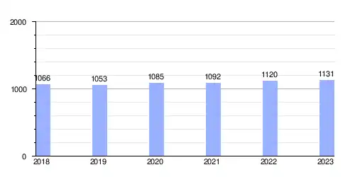 Hasta 2023 la población era de 1131 habitantes,[3] con una densidad de población de 58,32 habitantes por kilómetro cuadrado.[3]