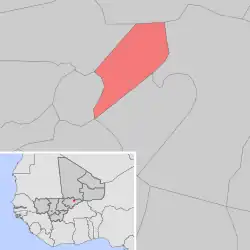 Se encuentra ubicada en el centro-este del país, cerca de la frontera con Burkina Faso y con la región de Tombuctú.