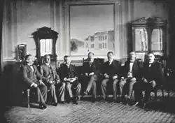 Miembros del Gabinete y Ejército del Gobierno del Dr. Alfonso Quiñonez Molina, a la derecha su sucesor Pio Romero Bosque.