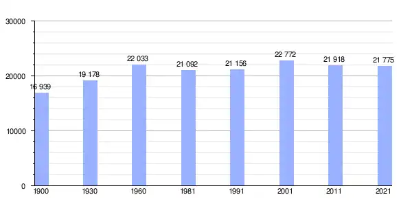 | Gráfica de evolución demográfica de Póvoa de Lanhoso entre 1900 y 2021 |