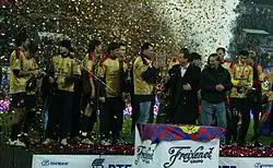 Los jugadores del CSKA celebran el título de liga de 2006.