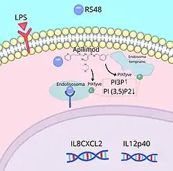 Modulación de la expresión génica : en levaduras, PI(3,5)P2 interactúa con complejos de transcripción para modular la expresión génica. En células de mamíferos, la inhibición de PIKfyve afecta a factores de transcripción como TFEB y regula positivamente los genes relacionados con la autofagia mediante la modulación de mTORC1.[32]
