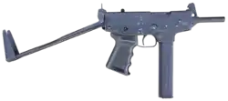 Es accionado por retroceso y dispara a cerrojo cerrado, lo que permite efectuar disparos más precisos de lo que sería posible desde un subfusil que dispara a cerrojo abierto. La munición se alimenta desde un cargador de doble hilera y posee un culatín plegable para el hombro.