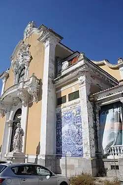 La fachada principal presenta paneles de azulejos, en azul y blanco, producidos por la Fábrica de Sacavém, en 1922, que representan escenas de la Historia de Portugal con temas dedicados a diversos temas como son: Sagres, la Batalla de Ourique, la Ala dos Namorados en la Batalla de Aljubarrota y el Cruzeiro del Sur .