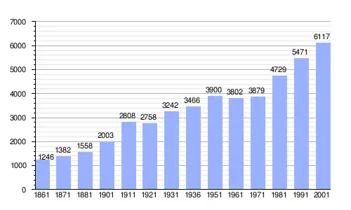 | Gráfica de evolución demográfica de Pace del Mela entre 1861 y 2001 |