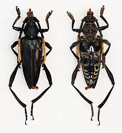 - ↑ a b c d e «Pachyteria melancholica». Instituto de Investigación para el Desarrollo - Base de données Titan sur les Cerambycidés ou Longicornes (en francés). Consultado el 27 de julio de 2022.