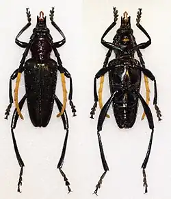 - ↑ a b c d e «Pachyteria virescens». Instituto de Investigación para el Desarrollo - Base de données Titan sur les Cerambycidés ou Longicornes (en francés). Consultado el 27 de julio de 2022.