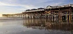 También hay una acera a lo largo de Mission Bay en la cual empieza desde Crown Point sobre Sail Bay y Mission Beach. El paseo marítimo está típicamente lleno de peatones, ciclista, y compradores. La escena de playa gira en torno a Crystal Pier, un gran muelle y hotel en el extremo oeste de la Avenida Garnete.