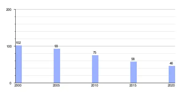 | Gráfica de evolución demográfica de Pacios de Veiga entre 2000 y 2020 |