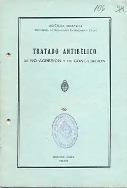 En 1933, el Gobierno argentino, durante la presidencia de Agustín Pedro Justo, a través de su Canciller, Carlos Saavedra Lamas, propuso al de Brasil la conclusión de un pacto antibélico, que fue firmado inicialmente el 10 de octubre de 1933,[1] con la firma inicial de Argentina, Brasil, Chile, México, Paraguay y Uruguay.[2]