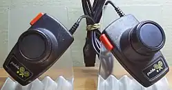 En la Atari 2600, los controladores paddle parecían similares a los controladores de conducción. Los paddles venían en parejas, ambos conectados a un mismo puerto. Algunos paddles permitían una rotación de más de una vuelta completa (360 grados) antes de encontrarse con el extremo final de la rotación. Finalmente, tuvieron un dibujo de una raqueta y adquirieron la palabra paddle. Como podían conectarse dos paddles al mismo puerto y la Atari 2600 tenía dos puertos de juegos, podían jugar a la vez cuatro jugadores a juegos que lo permitiesen. Estos paddles fueron compatibles también con el ordenador personal Atari 800 (el cual tenía cuatro puertos de juegos). Sin embargo, es dudoso que existiese algún juego que pudiese soportar tantos jugadores.