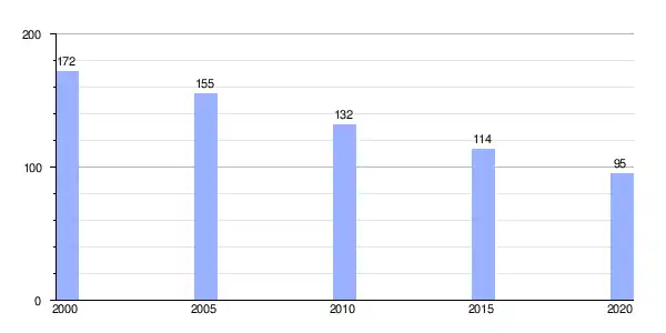 | Gráfica de evolución demográfica de Padornelo (parroquia) entre 2000 y 2020 |