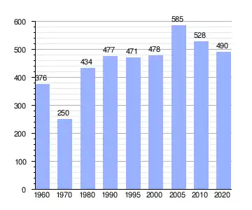 En 2020 registró una población de 490 personas, lo que corresponde al 1.30 % de la población municipal.[7] De los cuales 234 son hombres y 256 son mujeres.[7]