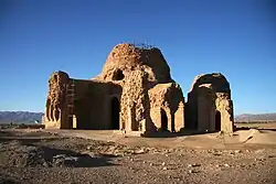El monumento de Sarvestan, una vez confundido con un palacio sasánida y ahora considerado un probable templo de fuego, fue construido entre finales del siglo VII y finales del siglo IX, o durante el período de transición entre el final de la dinastía y la conquista árabe. Forma un chahartaq, una unidad arquitectónica que consta de cuatro arcos.