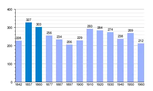 | Gráfica de evolución demográfica de Pajares[3] entre 1842 y 1960 |