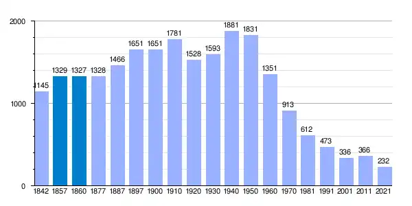 | Gráfica de evolución demográfica de Pajares de los Oteros[5] entre 1842 y 2021 |