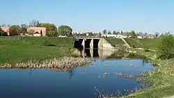 Puente arqueado sobre el río Kruoja. Construido en 1819 . Quedó reflejado en el escudo de armas de la ciudad.