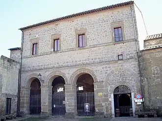 El edificio, de estructura ligera y austera, se caracteriza por su elegante vestíbulo, donde encontramos un techo formado por bóvedas cruzadas y un pórtico de madera del siglo XVI que conduce al jardín.