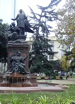 Vista del exterior desde la Plaza Benjamín Vicuña Mackenna (Santiago de Chile) del actual edificio (al fondo) donde se emplazaba el Palacio Dávila.