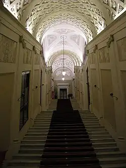 La escalera de Nottolini conduce a las salas de recepción, ahora ocupadas por la Provincia y la Prefectura. En lo alto de la escalera se encuentra la Galería de las estatuas, decorada con estuco y estatuas de mármol a imitación de las clásicas, obra sobre todo de artistas de Carrara.