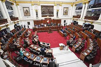 El hemiciclo de sesiones del Congreso de la República del Perú, es el ambiente donde se celebran las sesiones plenarias del parlamento. Según el Reglamento del Congreso, estas sesiones se deben celebrar, cuando menos, semanalmente. Este recinto fue inaugurado en 1908 durante la ceremonia de transmisión de mando presidencial de José Pardo y Barreda a Augusto Leguía. Sin embargo, su construcción total demoró hasta 1912, tiempo en el cual los diputados sesionaban en el Palacio de la Exposición.[1] La primera sesión ordinaria de la Cámara de Diputados en este hemiciclo se instaló el 13 de julio de 1912 aunque el íntegro del Palacio aún se encontraba inconcluso.