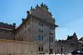 El edificio se distingue particularmente por su esgrafiado italiano, que data de 1567, sus altos frontones también cubiertos de esgrafiado y su profunda cornisa entre el techo y la pared.