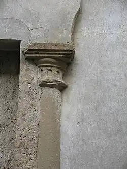 Los vanos fueron distribuidos de forma asimétrica y son adintelados. Los de la planta principal tienen tres arquillos en el interior del hueco y una moldura dispuesta a manera de alfiz en el contorno. El piso alto está recorrido por una galería, de arquillos doblados con ventanas trigeminadas (posiblemente tuvieron, cada una de ellas, dos finas columnas que desaparecieron en época desconocida), encajada entre las dos torres.
