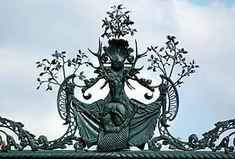 La fachada está adornada con esculturas que representan a Minerva (diosa de la sabiduría, de las letras, las ciencias y las artes). Baco decora el pabellón que alberga la cocina y las bodegas. En una visita se puede admirar un gran palomar, una puerta monumental y un pozo con un torniquete de agua.[3]