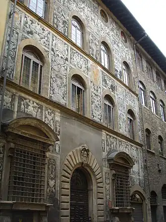 Mientras tanto, el edificio había sido cedido al Hospital de Santa Maria Nuova, y fue entonces cuando se pintaron los grutescos en la fachada, obra de Bernardino Poccetti (1579-1580).