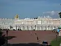 Aunque el palacio se asocia popularmente con Catalina la Grande, realmente ella consideró su arquitectura de «nata batida» como anticuada. Cuando ascendió al trono, una serie de estatuas del parque fueron cubiertas con oro, de acuerdo con el último deseo de la emperatriz Isabel, pero la nueva emperatriz hizo que todas las obras se suspendieran al ser informada de los costes. En sus memorias censuró la imprudente extravagancia de su predecesora: «El palacio se estaba construyendo entonces, pero era la obra de Penélope: lo que se hacía hoy, se destruía mañana. Esa casa había sido demolida seis veces hasta sus cimientos, luego vuelta a construir hasta que alcanzó su estado actual. Se gastó en la construcción la suma de un millón seiscientos mil rublos. Existen cuentas que lo prueban; pero aparte de esta suma, la emperatriz gastó mucho dinero de su propio bolsillo en él, sin contarlo nunca».