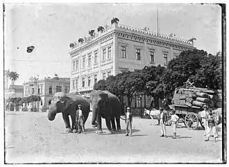 En 1910, estas esculturas fueron sustituidas por siete arpías de bronce (cinco en la parte delantera y dos en la trasera), obra de Rodolfo Bernardelli,[2] lo que le valió al edificio el sobrenombre, aunque incorrecto, de "Palacio de las Águilas".