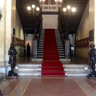 La escalera principal fue construida en Alemania a partir de módulos prefabricados de hierro fundido, una de las primeras de este tipo que se utilizaron en Brasil.[2] El vestíbulo de la escalera estaba iluminado de forma natural por la claraboya de cristal de colores del techo, a la que se añadieron las luces de las lámparas eléctricas en la época de la Presidencia.