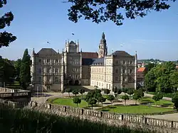 El palacio fue construido por Juan Ernesto, duque de Sajonia-Coburgo, en 1543. La nueva ciudad se erigió en torno de un monasterio franciscano disuelto.