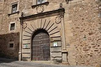 - ↑ cacerespatrimonio.com (ed.). «Palacio de Godoy». Archivado desde el original el 17 de marzo de 2008. Consultado el 2 de julio de 2024.