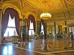 - ↑ El sitio web del Museo Estatal del Hermitage registra que el Duque vivió en estas habitaciones, poco después de su matrimonio con la hija del Zar, en 1839. El zar construyó a los duques de Leuchtenberg el Palacio Marinsky (terminado en 1844), lo que permitió al duque escapar a un entorno que debía ser menos humillante.